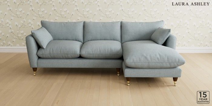 6.12.13 Buy Casterton by Laura Ashley Medium Sofa Chaise - Right Hand Anneliese Seaspray Blue Low Brass Castor - Teak from the Next UK online shop Click here to use our accessible website