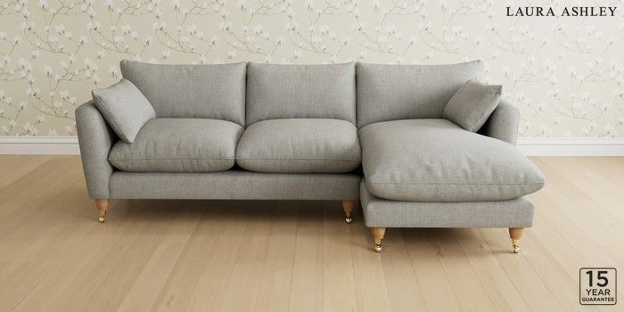 6.12.1 Buy Casterton by Laura Ashley Medium Sofa Chaise - Right Hand Anneliese Steel Grey Low Brass Castor - Light Oak from the Next UK online shop Click here to use our accessible website