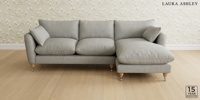 6.12.1 Buy Casterton by Laura Ashley Medium Sofa Chaise - Right Hand Anneliese Steel Grey Low Chrome Castor - Light Oak from the Next UK online shop Click here to use our accessible website