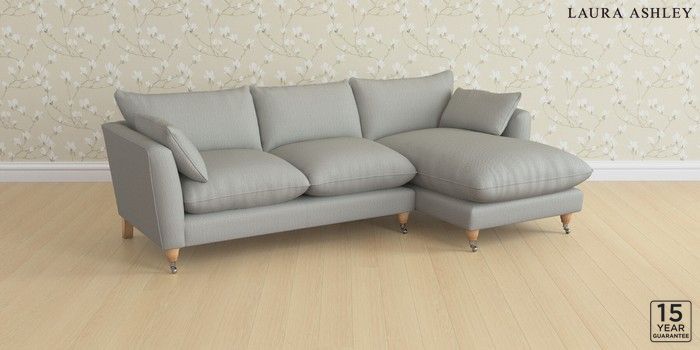 6.12.1 Buy Casterton by Laura Ashley Medium Sofa Chaise - Right Hand Edwin Herringbone Pale Steel Grey Low Chrome Castor - Light Oak from the Next UK online shop Click here to use our accessible website
