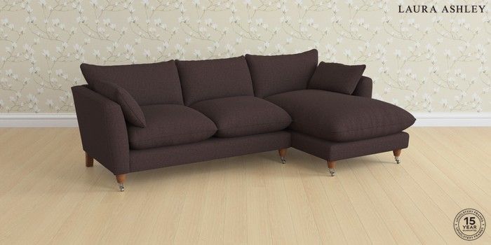 7.0.3 Buy Casterton by Laura Ashley Medium Sofa Chaise - Right Hand Bainton Chocolate Brown Low Chrome Castor - Teak from the Next UK online shop Click here to use our accessible website