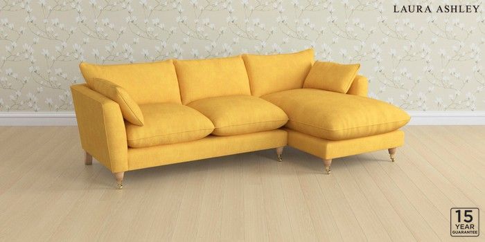 6.12.1 Buy Casterton by Laura Ashley Medium Sofa Chaise - Right Hand Bainton Ochre Yellow Low Brass Castor - Light Oak from the Next UK online shop Click here to use our accessible website