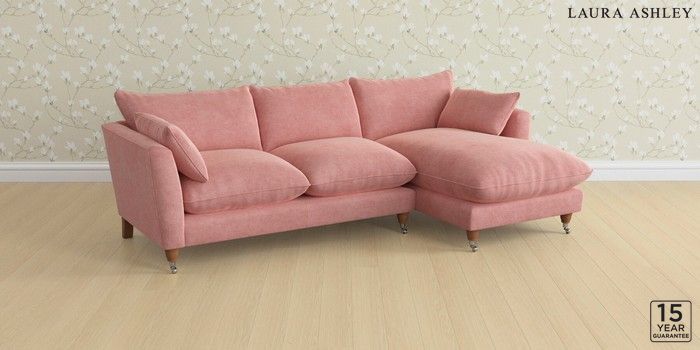 6.12.1 Buy Casterton by Laura Ashley Medium Sofa Chaise - Right Hand Bainton Old Rose Pink Low Chrome Castor - Teak from the Next UK online shop Click here to use our accessible website