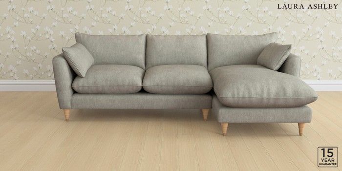 6.12.1 Buy Casterton by Laura Ashley Medium Sofa Chaise - Right Hand Bainton Pale Steel Grey Low Turned - Light Oak from the Next UK online shop Click here to use our accessible website