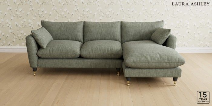 6.12.1 Buy Casterton by Laura Ashley Medium Sofa Chaise - Right Hand Bainton Sage Green Low Brass Castor - Black from the Next UK online shop Click here to use our accessible website
