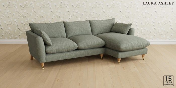 6.12.1 Buy Casterton by Laura Ashley Medium Sofa Chaise - Right Hand Bainton Sage Green Low Brass Castor - Light Oak from the Next UK online shop Click here to use our accessible website