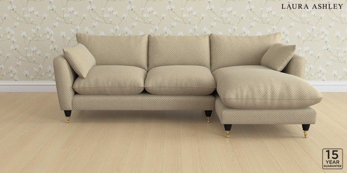 6.12.1 Buy Casterton by Laura Ashley Medium Sofa Chaise - Right Hand Chequers Hazelnut Natural Low Brass Castor - Black from the Next UK online shop Click here to use our accessible website