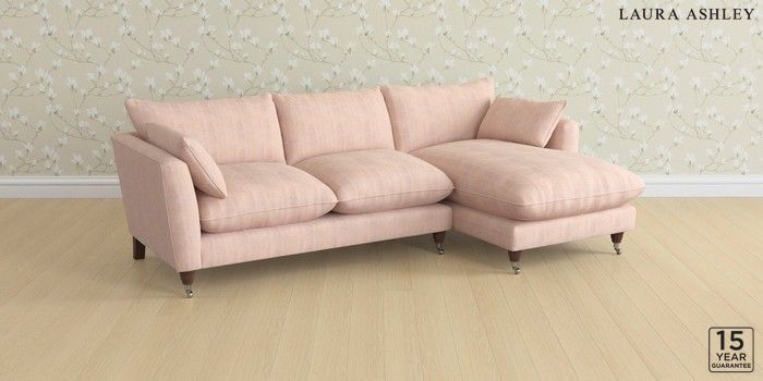 6.12.1 Buy Casterton by Laura Ashley Medium Sofa Chaise - Right Hand Edwin Chenille Blush Pink Low Chrome Castor - Chestnut from the Next UK online shop Click here to use our accessible website