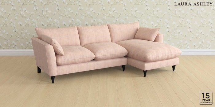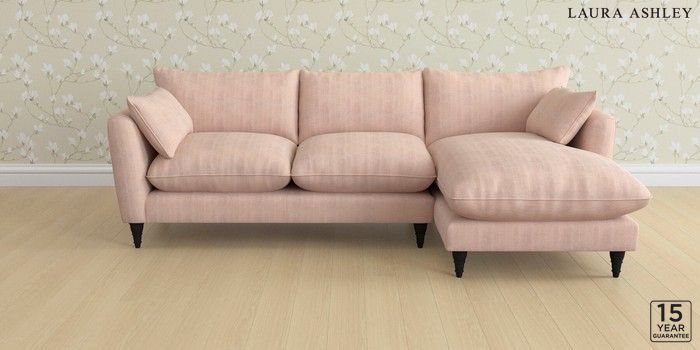 6.12.1 Buy Casterton by Laura Ashley Medium Sofa Chaise - Right Hand Edwin Chenille Blush Pink Low Turned - Black from the Next UK online shop Click here to use our accessible website