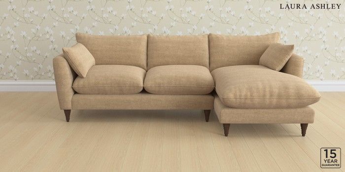 6.12.1 Buy Casterton by Laura Ashley Medium Sofa Chaise - Right Hand Edwin Chenille Gold Natural Low Turned - Chestnut from the Next UK online shop Click here to use our accessible website