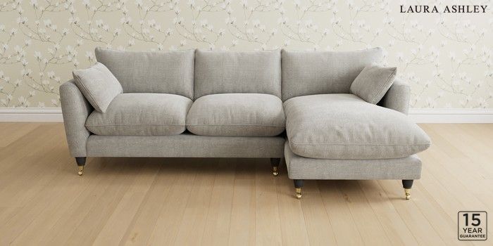 6.12.1 Buy Casterton by Laura Ashley Medium Sofa Chaise - Right Hand Edwin Chenille Silver Grey Low Brass Castor - Black from the Next UK online shop Click here to use our accessible website
