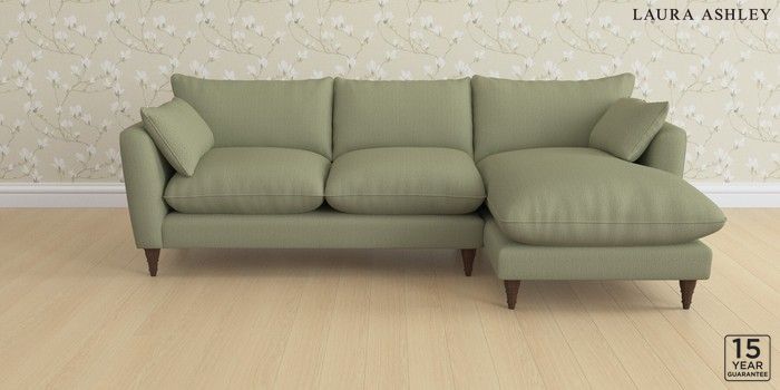 6.12.1 Buy Casterton by Laura Ashley Medium Sofa Chaise - Right Hand Edwin Herringbone Hedgerow Green Low Turned - Chestnut from the Next UK online shop Click here to use our accessible website