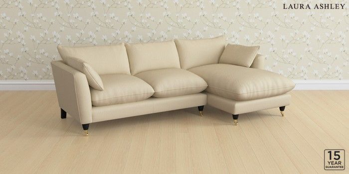 6.12.1 Buy Casterton by Laura Ashley Medium Sofa Chaise - Right Hand Edwin Herringbone Natural Low Brass Castor - Black from the Next UK online shop Click here to use our accessible website