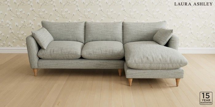 6.12.1 Buy Casterton by Laura Ashley Medium Sofa Chaise - Right Hand Harley Dove Grey Low Turned - Light Oak from the Next UK online shop Click here to use our accessible website