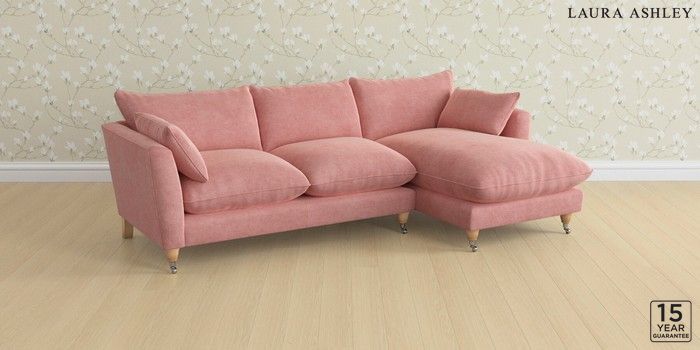 6.12.1 Buy Casterton by Laura Ashley Medium Sofa Chaise - Right Hand Bainton Old Rose Pink Low Chrome Castor - Light Oak from the Next UK online shop Click here to use our accessible website