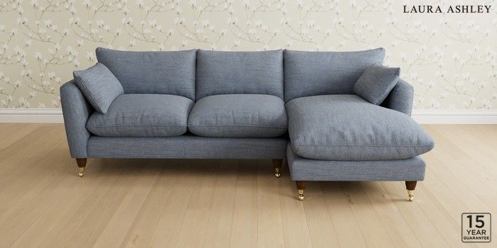 6.12.1 Buy Casterton by Laura Ashley Medium Sofa Chaise - Right Hand Harley Seaspray Blue Low Brass Castor - Teak from the Next UK online shop Click here to use our accessible website