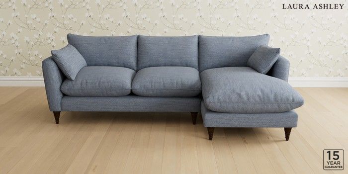 6.12.1 Buy Casterton by Laura Ashley Medium Sofa Chaise - Right Hand Harley Seaspray Blue Low Turned - Chestnut from the Next UK online shop Click here to use our accessible website