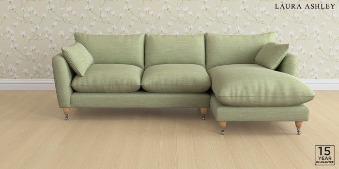 6.12.1 Buy Casterton by Laura Ashley Medium Sofa Chaise - Right Hand Kinsham Hedgerow Green Low Chrome Castor - Light Oak from the Next UK online shop Click here to use our accessible website