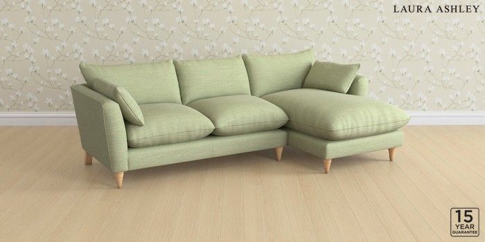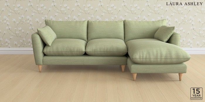 6.12.1 Buy Casterton by Laura Ashley Medium Sofa Chaise - Right Hand Kinsham Hedgerow Green Low Turned - Light Oak from the Next UK online shop Click here to use our accessible website