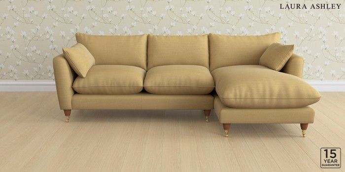 6.12.1 Buy Casterton by Laura Ashley Medium Sofa Chaise - Right Hand Kinsham Ochre Yellow Low Brass Castor - Teak from the Next UK online shop Click here to use our accessible website