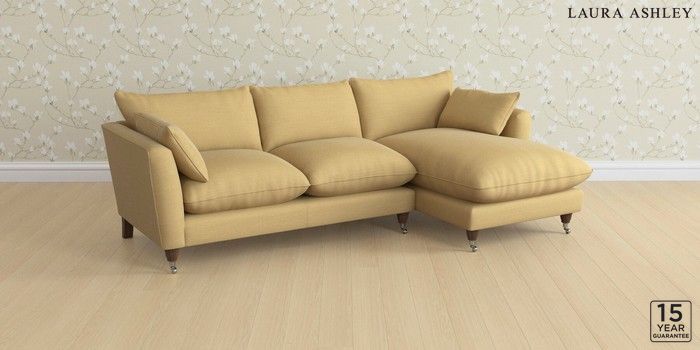 6.12.1 Buy Casterton by Laura Ashley Medium Sofa Chaise - Right Hand Kinsham Ochre Yellow Low Chrome Castor - Chestnut from the Next UK online shop Click here to use our accessible website