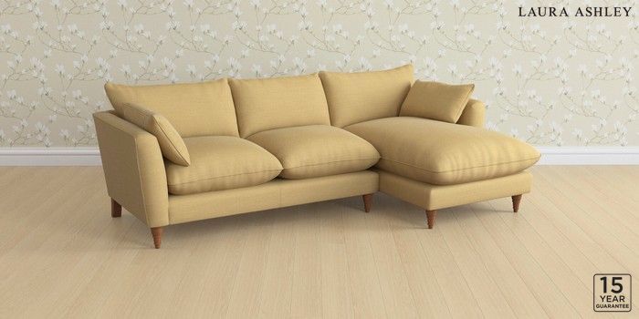 6.12.1 Buy Casterton by Laura Ashley Medium Sofa Chaise - Right Hand Kinsham Ochre Yellow Low Turned - Teak from the Next UK online shop Click here to use our accessible website