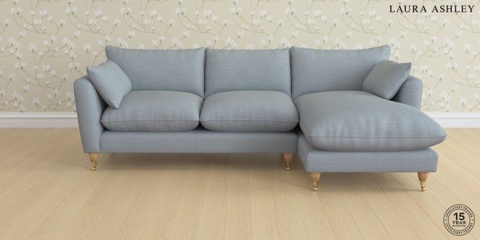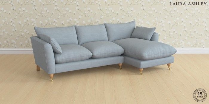 6.12.1 Buy Casterton by Laura Ashley Medium Sofa Chaise - Right Hand Kinsham Seaspray Blue Low Brass Castor - Light Oak from the Next UK online shop Click here to use our accessible website