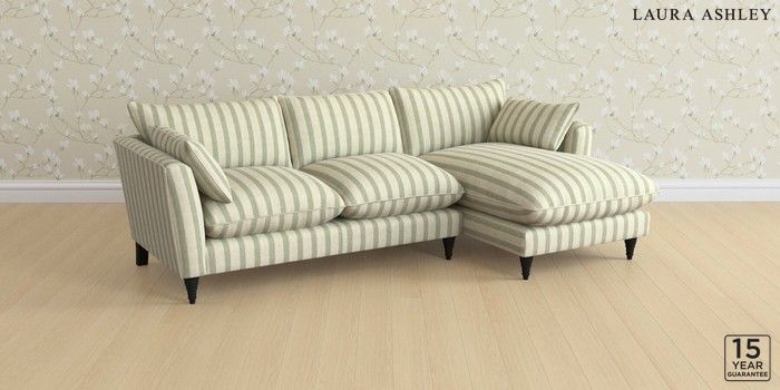 6.12.1 Buy Casterton by Laura Ashley Medium Sofa Chaise - Right Hand Kinsham Stripe Hedgerow Green Low Turned - Black from the Next UK online shop Click here to use our accessible website