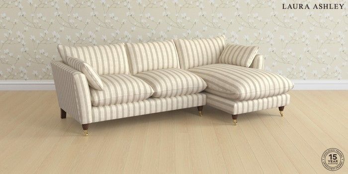 6.12.1 Buy Casterton by Laura Ashley Medium Sofa Chaise - Right Hand Kinsham Stripe Natural Low Brass Castor - Chestnut from the Next UK online shop Click here to use our accessible website