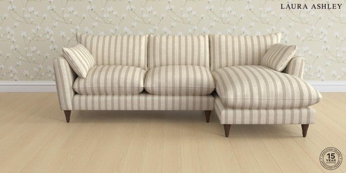 6.12.1 Buy Casterton by Laura Ashley Medium Sofa Chaise - Right Hand Kinsham Stripe Natural Low Turned - Chestnut from the Next UK online shop Click here to use our accessible website