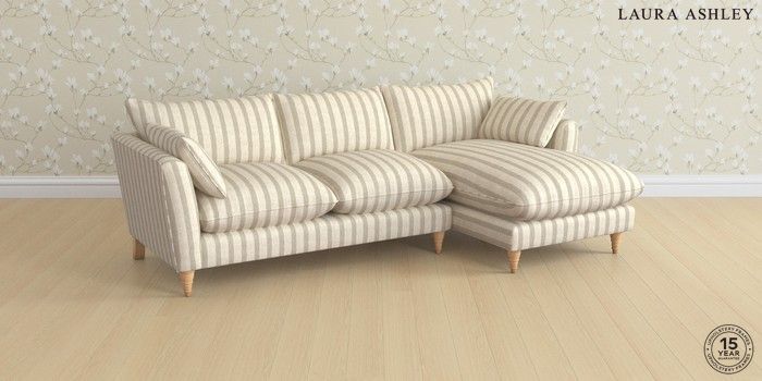 6.12.1 Buy Casterton by Laura Ashley Medium Sofa Chaise - Right Hand Kinsham Stripe Natural Low Turned - Light Oak from the Next UK online shop Click here to use our accessible website