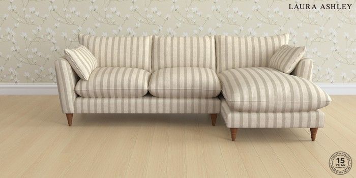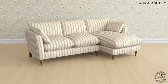 6.12.1 Buy Casterton by Laura Ashley Medium Sofa Chaise - Right Hand Kinsham Stripe Natural Low Turned - Teak from the Next UK online shop Click here to use our accessible website