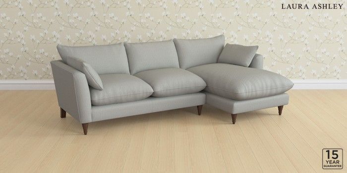 6.12.1 Buy Casterton by Laura Ashley Medium Sofa Chaise - Right Hand Edwin Herringbone Pale Steel Grey Low Turned - Chestnut from the Next UK online shop Click here to use our accessible website