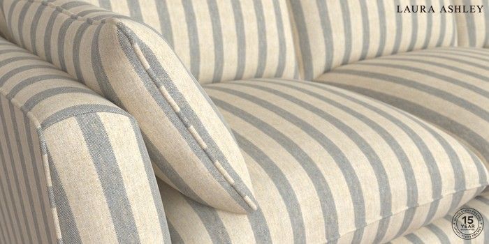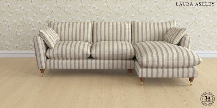 6.12.1 Buy Casterton by Laura Ashley Medium Sofa Chaise - Right Hand Kinsham Stripe Seaspray Blue Low Brass Castor - Teak from the Next UK online shop Click here to use our accessible website