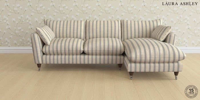 6.12.1 Buy Casterton by Laura Ashley Medium Sofa Chaise - Right Hand Kinsham Stripe Seaspray Blue Low Chrome Castor - Chestnut from the Next UK online shop Click here to use our accessible website
