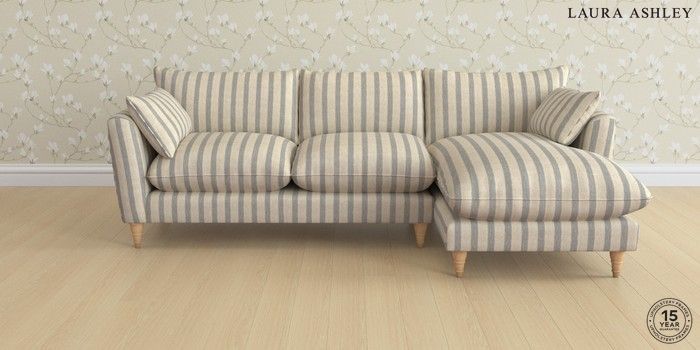 6.12.1 Buy Casterton by Laura Ashley Medium Sofa Chaise - Right Hand Kinsham Stripe Seaspray Blue Low Turned - Light Oak from the Next UK online shop Click here to use our accessible website