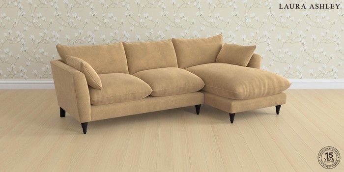 6.12.1 Buy Casterton by Laura Ashley Medium Sofa Chaise - Right Hand Lundar Chenille Caramel Natural Low Turned - Black from the Next UK online shop Click here to use our accessible website