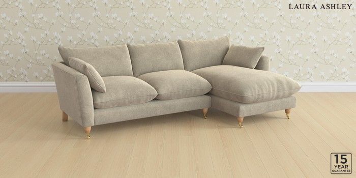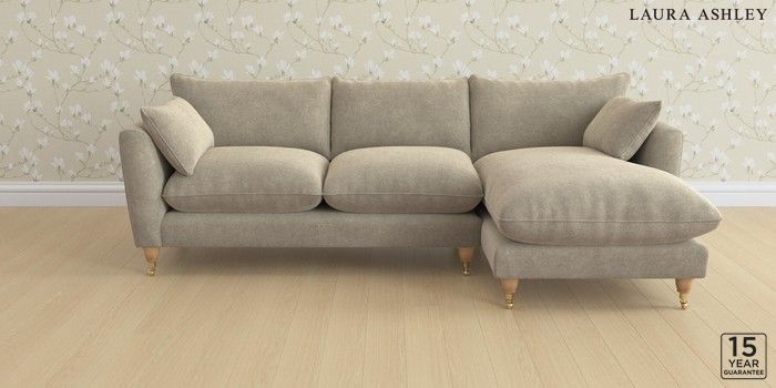 6.12.1 Buy Casterton by Laura Ashley Medium Sofa Chaise - Right Hand Lundar Chenille Truffle Natural Low Brass Castor - Light Oak from the Next UK online shop Click here to use our accessible website