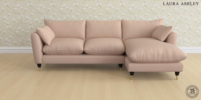 6.12.1 Buy Casterton by Laura Ashley Medium Sofa Chaise - Right Hand Melbreak Geo Chalk Pink Low Brass Castor - Black from the Next UK online shop Click here to use our accessible website