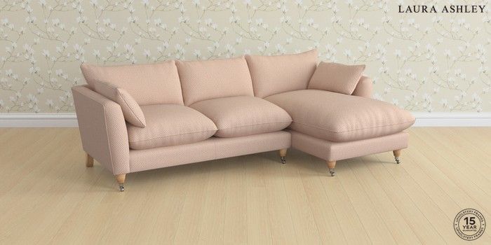 6.12.1 Buy Casterton by Laura Ashley Medium Sofa Chaise - Right Hand Melbreak Geo Chalk Pink Low Chrome Castor - Light Oak from the Next UK online shop Click here to use our accessible website