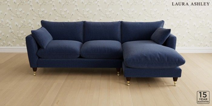 6.12.1 Buy Casterton by Laura Ashley Medium Sofa Chaise - Right Hand Nantmor Midnight Navy Low Brass Castor - Chestnut from the Next UK online shop Click here to use our accessible website