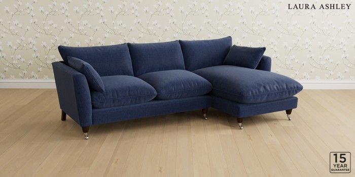 6.12.1 Buy Casterton by Laura Ashley Medium Sofa Chaise - Right Hand Nantmor Midnight Navy Low Chrome Castor - Chestnut from the Next UK online shop Click here to use our accessible website