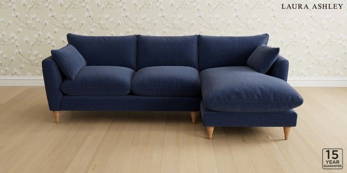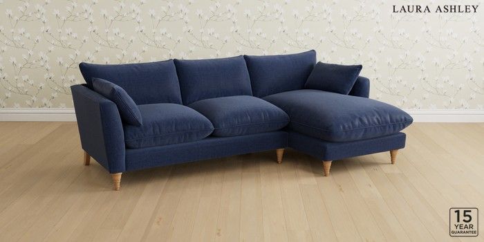 6.12.1 Buy Casterton by Laura Ashley Medium Sofa Chaise - Right Hand Nantmor Midnight Navy Low Turned - Light Oak from the Next UK online shop Click here to use our accessible website