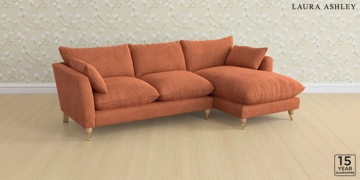 6.12.1 Buy Casterton by Laura Ashley Medium Sofa Chaise - Right Hand Nantmor Rust Orange Low Brass Castor - Light Oak from the Next UK online shop Click here to use our accessible website
