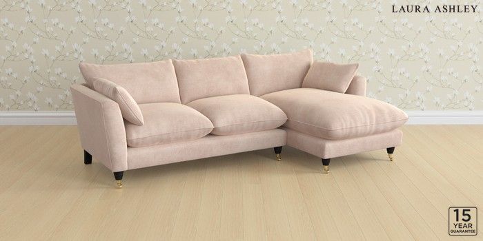 6.12.1 Buy Casterton by Laura Ashley Medium Sofa Chaise - Right Hand Orla Chalk Pink Low Brass Castor - Black from the Next UK online shop Click here to use our accessible website