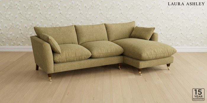 6.12.1 Buy Casterton by Laura Ashley Medium Sofa Chaise - Right Hand Orla Gold Natural Low Brass Castor - Teak from the Next UK online shop Click here to use our accessible website