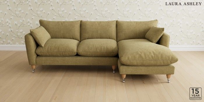 6.12.1 Buy Casterton by Laura Ashley Medium Sofa Chaise - Right Hand Orla Gold Natural Low Chrome Castor - Light Oak from the Next UK online shop Click here to use our accessible website