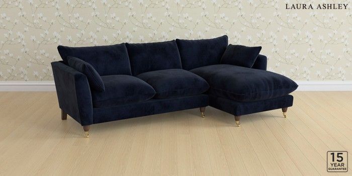 6.12.1 Buy Casterton by Laura Ashley Medium Sofa Chaise - Right Hand Orla Midnight Navy Low Brass Castor - Chestnut from the Next UK online shop Click here to use our accessible website