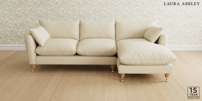 6.12.1 Buy Casterton by Laura Ashley Medium Sofa Chaise - Right Hand Orla Oyster Natural Low Brass Castor - Light Oak from the Next UK online shop Click here to use our accessible website