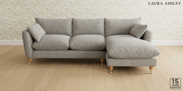 6.12.1 Buy Casterton by Laura Ashley Medium Sofa Chaise - Right Hand Orla Pale Steel Grey Low Brass Castor - Light Oak from the Next UK online shop Click here to use our accessible website